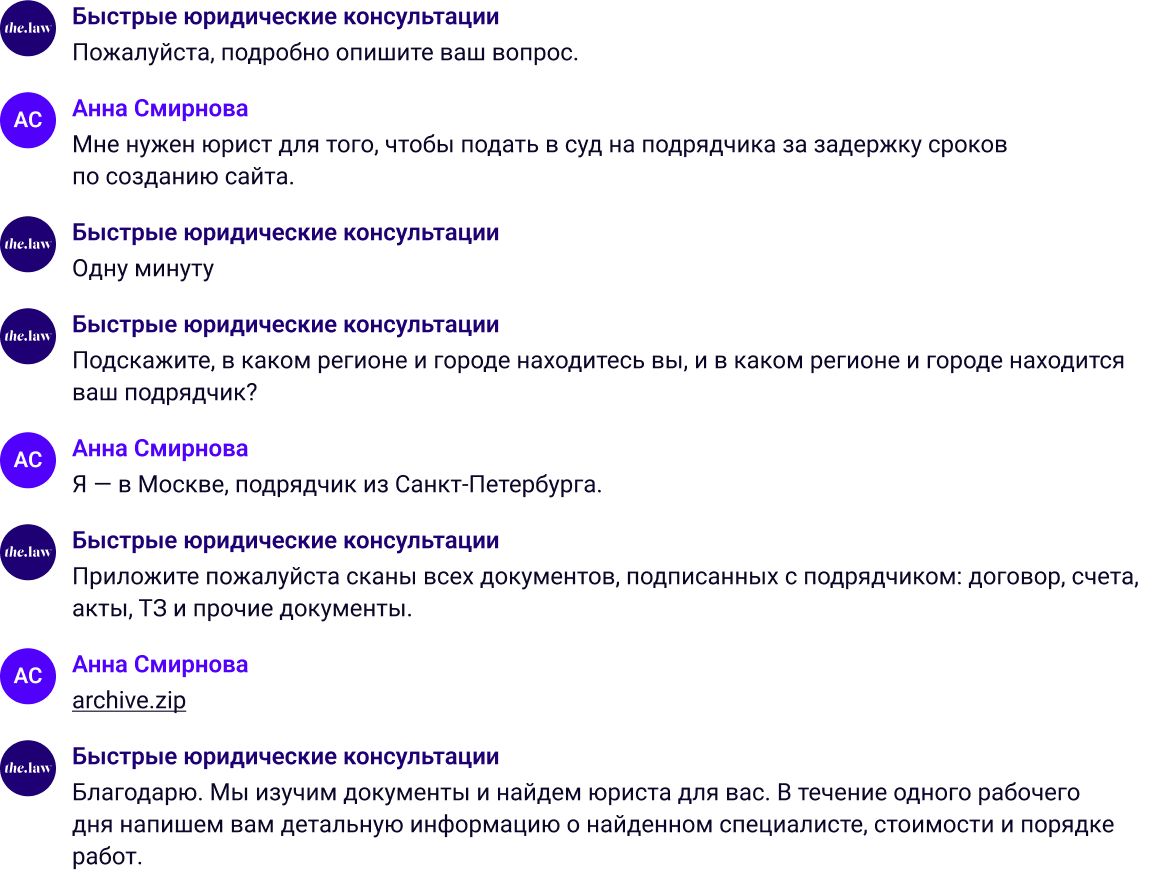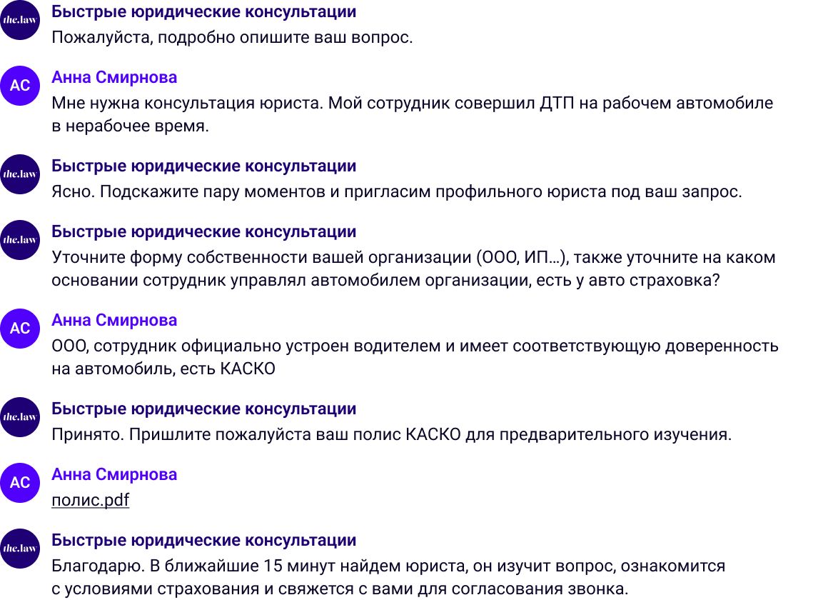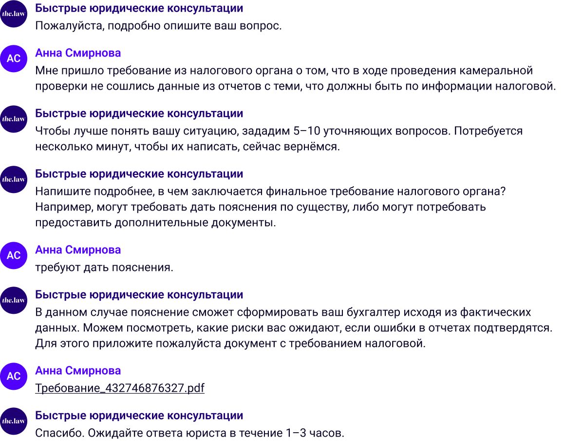 - Задать юридический вопрос по вашей бизнес-задаче и получить быстрый ответ в чате